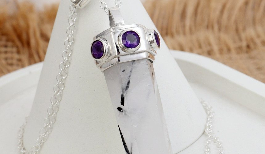 Sterling silver necklace with Black Tourmaline and Amethyst | NL779089