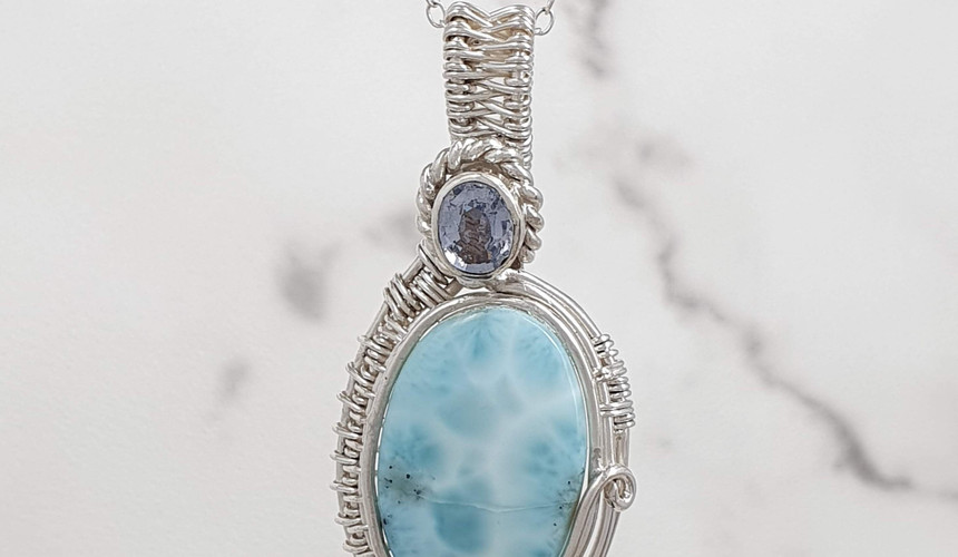 Sterling silver wire works necklace with Larimar and Blue Sapphire | NL779066